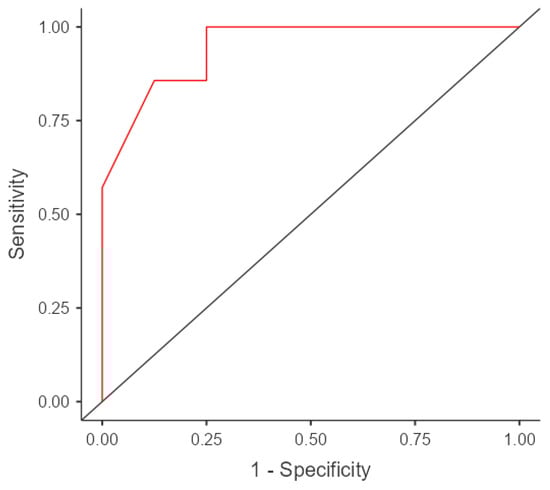 ROC curve analysis differentiated between aspirable and non-aspirable macroadenomas (Figure 3). At a cut-off value of 0.63 × 10−3 mm2/s, the ADC showed a sensitivity of 85.7%, a specificity of 75%, and an overall accuracy of 80% for the identification of non-aspirable macroadenomas (AUC, 0.946).
