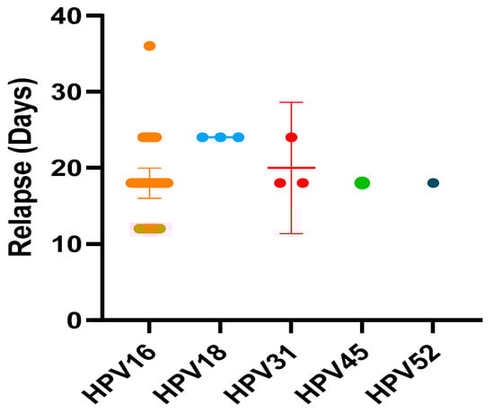Furthermore, there is no data on the existing correlation between the duration of HPV persistence and the onset of relapses. The study shows that there is a correlation between the length of persistence and relapses.