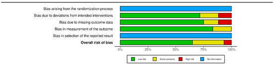 - RoB 2; ROBINS-I; ROBINS-E; ROB ME. Risk of Bias Visualization Tool. Available online: https://www.riskofbias.info/welcome/robvis-visualization-tool (accessed on 18 August 2023).