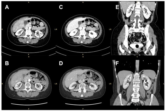 - Gregorini, G.; Jeannin, G.; Salviani, C.; Gaggiotti, M. Multiple kidney masses in a young man. Rheumatology 2019, 58, kez058.020. [Google Scholar] [CrossRef]