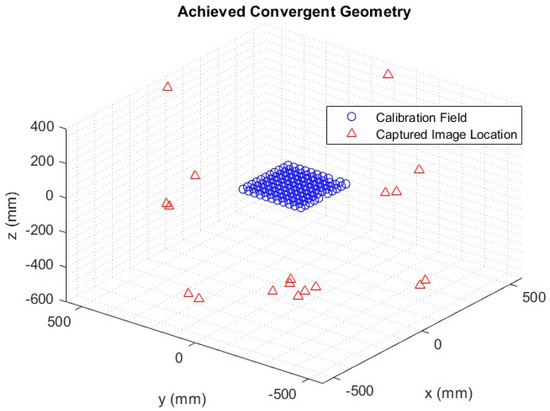 For accurate distortion modeling of systematic errors within the imagery, it is imperative to have a highly redundant set of observations as part of the LSA. However, the LSA estimation process often yields a high level of correlation between the IOPs and EOPs, leading to poor numerical conditioning of the model. To de-correlate these parameters, an established approach to the network design of the captured imagery is required. This strategy should include highly convergent imagery, varying orientations (i.e., landscape and portrait imagery), a dense array of targets, and a wide distribution of targets across the field of view (FOV) [13].