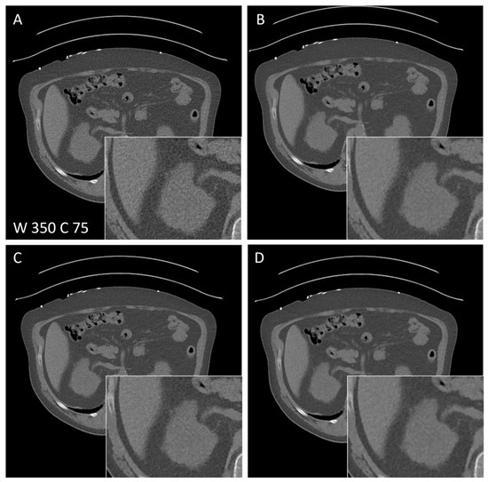 - Steuwe, A.; Weber, M.; Bethge, O.T.; Rademacher, C.; Boschheidgen, M.; Sawicki, L.M.; Antoch, G.; Aissa, J. Influence of a novel deep-learning based reconstruction software on the objective and subjective image quality in low-dose abdominal computed tomography. Br. J. Radiol. 2021, 94, 20200677. [Google Scholar] [CrossRef]