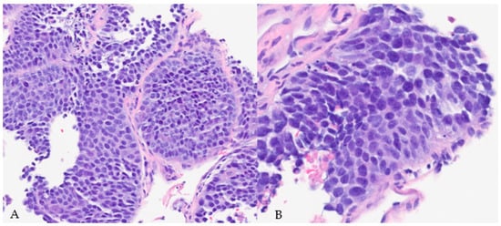 The metastatic involvement of the prostate must be excluded. The morphologic and immunohistochemical pictures along with the clinical findings, presenting symptomatology and radiological findings, are important in this distinction. Specifically, immunohistochemical stains such as GATA3 and uroplakin II and III may be helpful to exclude urothelial origin. Due to its rarity, the knowledge of the molecular profile in adenosquamous morphology is limited. Rearrangement involving ERG and BRAF are the most common among both secondary and de novo cases. The frequency of these rearrangements is similar, however, to that seen in conventional adenocarcinoma. It is recommended to perform NGS (next-generation sequencing) and FISH (fluorescence in situ hybridization) in addition to immunohistochemistry, as the latter is less sensitive for adenosquamous components [].