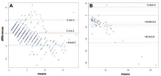 3.3. Bland and Altman Analyses