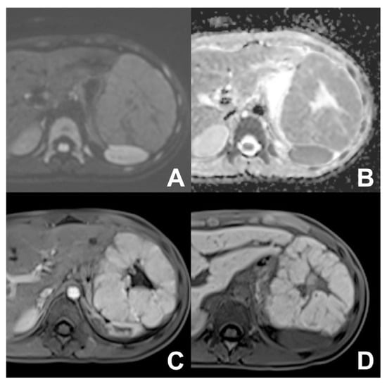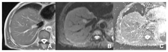 - Evaluation of diffuse liver disease: although different studies have attempted to correlate non-alcoholic fatty liver disease (NAFLD), fibrosis and cirrhosis to DWI parameters, no definitive or clear results have been proved; thus, at present, DWI cannot be used as a biomarker for diffuse liver disease [17].