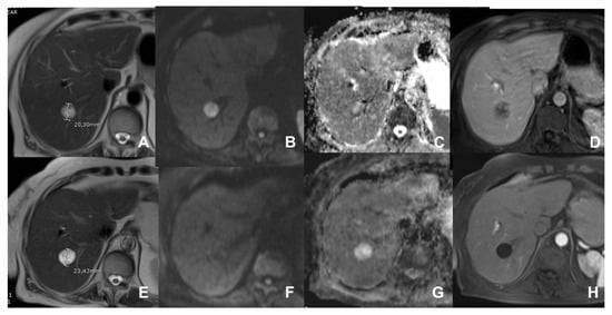 - Inchingolo, R.; De Gaetano, A.M.; Curione, D.; Ciresa, M.; Miele, L.; Pompili, M.; Vecchio, F.M.; Giuliante, F.; Bonomo, L. Role of diffusion-weighted imaging, apparent diffusion coefficient and correlation with hepatobiliary phase findings in the differentiation of hepatocellular carcinoma from dysplastic nodules in cirrhotic liver. Eur. Radiol. 2015, 25, 1087–1096. [Google Scholar] [CrossRef]