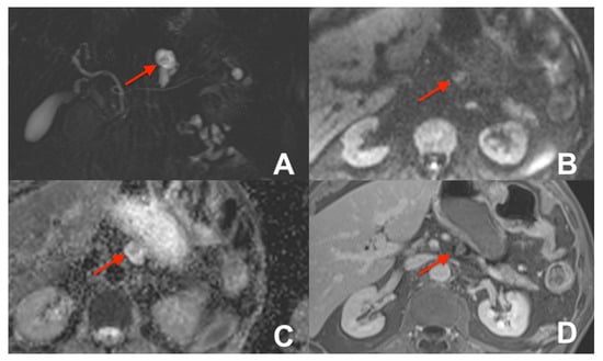 - Ichikawa, T.; Sou, H.; Araki, T.; Arbab, A.S.; Yoshikawa, T.; Ishigame, K.; Haradome, H.; Hachiya, J. Duct-penetrating sign at MRCP: Usefulness for differentiating inflammatory pancreatic mass from pancreatic carcinomas. Radiology 2001, 221, 107–116. [Google Scholar] [CrossRef]