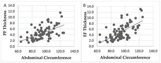 3.4. Association between Abdominal Circumference and PF and EF Thickness