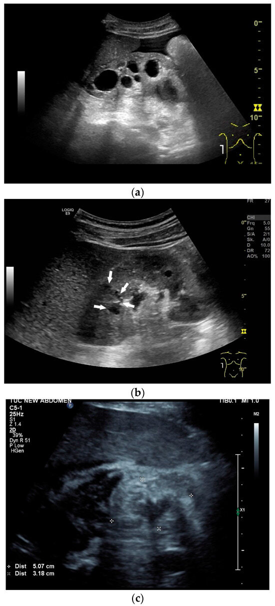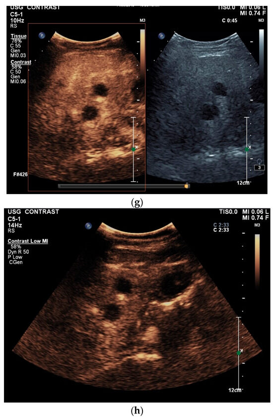 - Ignee, A.; Moller, K.; Thees-Laurenz, R.; Zadeh, E.S.; Gorg, C.; Correas, J.M.; Chaubal, N.; Sansone, V.; Jenssen, C.; Dong, Y.; et al. Comments and illustrations of the WFUMB CEUS liver guidelines: Rare focal liver lesions—Infectious (bacterial). Med. Ultrason 2023, 25, 312–324. [Google Scholar] [CrossRef]