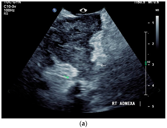 - Sharma, J.B.; Khurana, A.; Hari, S.; Singh, U.; RituYadav; Dharmendra, S. Evaluation of Role of Transabdominal and Transvaginal Ultrasound in Diagnosis of Female Genital Tuberculosis. J. Hum. Reprod Sci. 2021, 14, 250–259. [Google Scholar] [CrossRef]