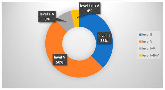 Here, 66.6% of patients had cervical adenopathy, and in 25% of cases, this was the initial symptom of onset. It was observed that half of the patients had involvement of the supraclavicular nodes, corresponding to level V, and 38% had the involvement of level II, respectively, the superior jugular nodes (Figure 3).