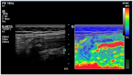 Several authors have attempted to evaluate elastography in ulcerative colitis, achieving remarkable results. Yamada et al. compared SWE with endoscopy, detecting a significant correlation with SWE, but not SWD, with endoscopic and clinical disease activity, particularly in distinguishing patients who achieved mucosal healing from those in the active phase []. Goertz R.S. et al. compared the ARFI p-SWE of active UC with healthy volunteers, proving that overall, ARFI elastography was higher in the UC group than in the group of healthy volunteers (p < 0.021 and p < 0.001, respectively) [].