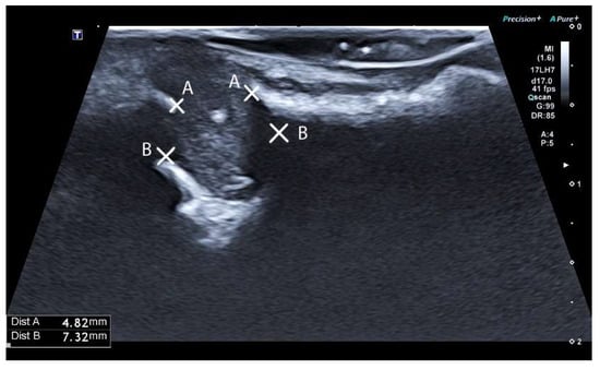 The determination of periapical lesion presence or absence and size measurements in the US images was carried out using the Apolio a450 (Canon Medical Systems Corporation, Shimoishigami Otawara, Tochigi, Japan), a Canon ultrasound machine digital measurement tool.