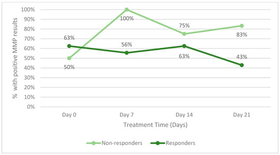 Percentage of patients with positive host matrix metalloprotease (MMP) activity within.