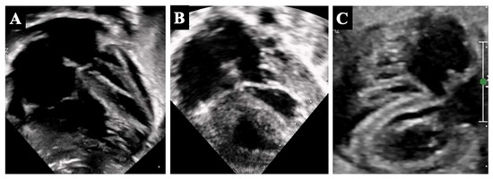 - Cohen, M.S.; Jegatheeswaran, A.; Baffa, J.M.; Gremmels, D.B.; Overman, D.M.; Caldarone, C.A.; McCrindle, B.W.; Mertens, L. Echocardiographic features defining right dominant unbalanced atrioventricular septal defect: A multi-institutional Congenital Heart Surgeons’ Society study. Circ. Cardiovasc. Imaging 2013, 6, 508–513. [Google Scholar] [PubMed]