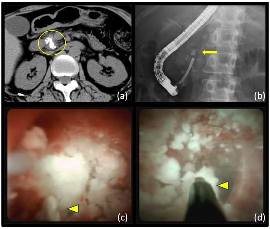 Pancreatic duct stones resulting from chronic pancreatitis may lead to symptoms such as abdominal and back pain, the acute exacerbation of pancreatitis, pseudocyst formation, and cyst infection, which may necessitate prompt intervention. Furthermore, the obstruction of pancreatic fluid drainage by these stones may lead to pancreatic parenchymal atrophy, causing irreversible endocrine and exocrine dysfunction and an increased risk of nutritional disorders, including diabetes and malabsorption [1,2]. Additionally, the risk of pancreatic cancer may increase with the persistence or exacerbation of chronic pancreatitis [3]. Traditional surgical interventions have long been employed to treat pancreatic stones, demonstrating favorable shortened long-term outcomes; however, their invasiveness is concerning [4,5].