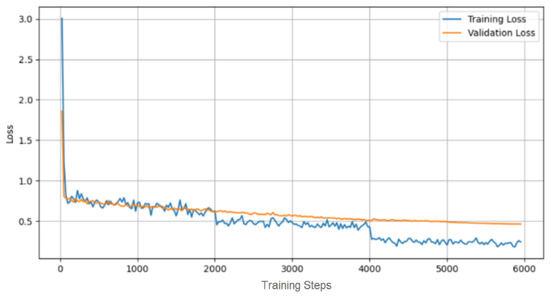 These metrics demonstrate the effectiveness of the fine-tuning strategy in enhancing the model’s performance for medical radiology term transcription. The progression of the training and validation loss over the fine-tuning period is illustrated in the loss curves shown in Figure 5, providing a visual representation of the model’s learning trajectory.