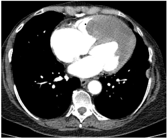 - Salazar, T.; Freitas, I.; Melo, C.; Ferreira, A.; Guerreiro, L. A Fatal Cause of Rapidly Progressive Heart Failure in a Middle-Aged Woman. Cureus 2022, 14, e21401. [Google Scholar] [CrossRef] [PubMed]