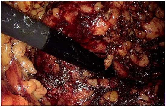 During the surgery, once the tumor was identified and isolated, the LUS (laparoscopic ultrasound) probe was employed for exploration. The exploration procedure included determining the position of the renal tumor formation, along with its depth, size, and vascularization, as well as confirming the area and depth of excision. Following this, laparoscopic ultrasound (LUS) was employed to examine the artery and vein at the renal hilum. Following tumor resection and after ensuring hemostasis, the renal artery was declamped, and the laparoscopic probe was used to observe the restoration of blood flow in the operative area. The primary objective of this methodology was to preserve tumor margins and ensure complete resection, as well as to provide constant monitoring of the renal vascular status during the intervention.