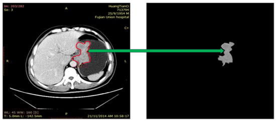 Gastric cancer (GC), one of the most prevalent malignant tumors, ranks as the second most common cause of cancer-related deaths worldwide []. Surgical procedures and subsequent chemotherapy are common therapeutic options. At the earliest possible stage of cancer diagnosis and prior to surgery, it is critical to accurately forecast the aggressiveness of malignant gastric tumors and the likelihood that patients will survive. Computed tomography (CT) is currently employed in clinical practice as the most common imaging modality to identify and diagnose gastric cancer []. We believe that CT scans can provide useful tumor phenotypic data related to tumor aggressiveness, which can be recognized and retrieved to assist in determining the chances of patients’ overall survival (OS).