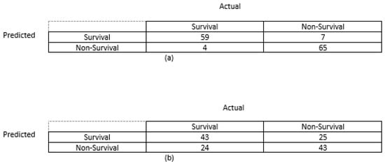 where TP and TN represent the number of correctly classified Survival and Non-Survival cases, while FP and FN represent misclassified Survival and Non-Survival cases.
