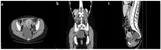 - George, M.; Alina-Roxani, G.; Zoi, T.; Maria, O.; George, C.; Charalampos, C. A Rare Case Report of a Tail-Gut Cyst from a Gynecological Point of View. J. Family Reprod. Health 2018, 12, 117–120. [Google Scholar]