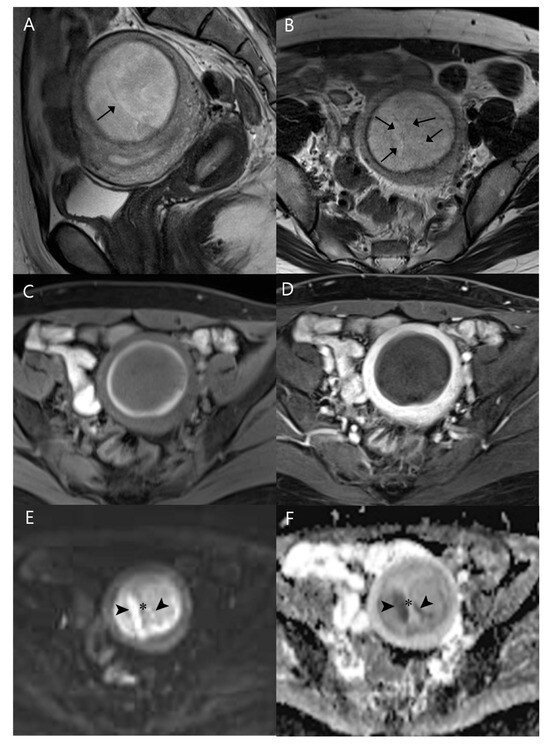 - Kawakami, S.; Togashi, K.; Konishi, I.; Kimura, I.; Fukuoka, M.; Mori, T.; Konishi, J. Red degeneration of uterine leiomyoma: MR appearance. J. Comput. Assist. Tomogr. 1994, 18, 925–928. [Google Scholar] [CrossRef]