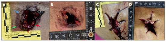 - Queiroz Nogueira Lira, R.; Geovana Motta de Sousa, L.; Memoria Pinho, M.L.; Pinto da Silva Andrade de Lima, R.C.; Garcia Freitas, P.; Scholles Soares Dias, B.; Breda de Souza, A.C.; Ferreira Leite, A. Deep Learning-Based Human Gunshot Wounds Classification. Int. J. Legal. Med. 2024. [Google Scholar] [CrossRef] [PubMed]