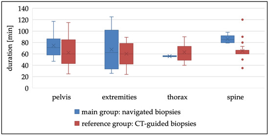 Apart from these investigations, and following extensive literature research, we identified studies focused on navigated tumor resections [29,30,31], but no studies specifically addressing surgical, minimally invasive, navigated tumor biopsies. The aim of this study, therefore, was to introduce the technique of surgical, percutaneous minimally invasive, navigated tumor biopsies and to compare it with the well-established CT-guided biopsy procedure in terms of accuracy, radiation exposure, safety, duration of the procedure, and complication rates.