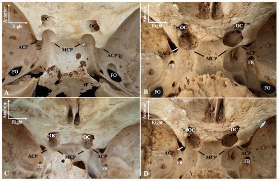 - Nikolova, S.; Toneva, D.; Zlatareva, D.; Fileva, N. Osseous Bridges of the Sphenoid Bone: Frequency, Bilateral and Sex Distribution. Biology 2023, 12, 492. [Google Scholar] [CrossRef] [PubMed]