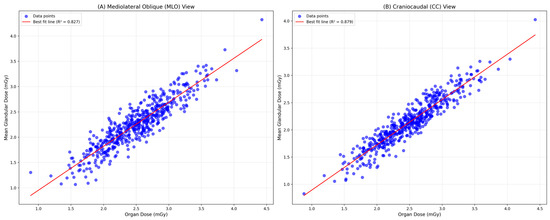 15], who demonstrated that DICOM organ doses do not always accurately represent calculated doses in mammography. Their study found statistically significant biases between DICOM-reported organ doses and independently calculated doses, emphasizing the need for the critical evaluation of system-reported doses and highlighting the importance of standardizing dose calculation methods across different manufacturers [
