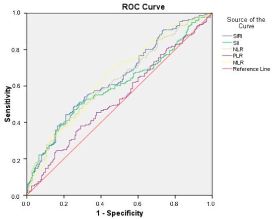 3.4. Receiver Operating Characteristic (ROC) Curve for SIRI, SII, NLR, PLR, and MLR in Predicting Preterm Delivery