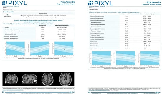 Quantitative brain volumetry was conducted using Pixyl.Neuro, a CE-marked, commercially available software platform developed by Pixyl SA (Grenoble, France). This tool enables automated segmentation and analysis of brain volumes using high-resolution 3D T1-weighted images.