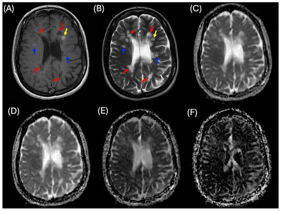 - Zacharzewska-Gondek, A.; Pokryszko-Dragan, A.; Maciej Gondek, T.; Kołtowska, A.; Gruszka, E.; Budrewicz, S.; Sąsiadek, M.; Bladowska, J. Apparent diffusion coefficient measurements in normal appearing white matter may support the differential diagnosis between multiple sclerosis lesions and other white matter hyperintensities. J. Neurol. Sci. 2019, 397, 24–30. [Google Scholar] [CrossRef]