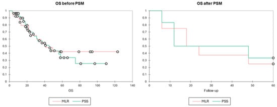 OS and DFS comparison between PSS and MLR before and after PSM.