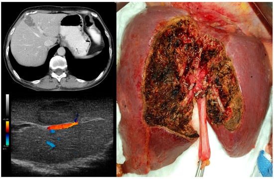 - Torzilli, G.; Garancini, M.; Donadon, M.; Cimino, M.; Procopio, F.; Montorsi, M. Intraoperative ultrasonographic detection of communicating veins between adjacent hepatic veins during hepatectomy for tumours at the hepatocaval confluence. Br. J. Surg. 2010, 97, 1867–1873. [Google Scholar] [CrossRef]