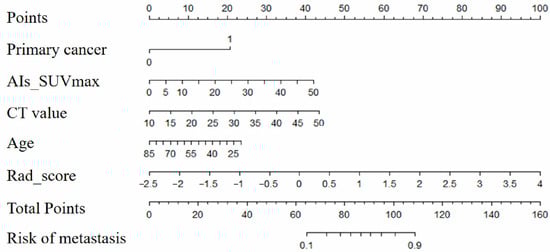 Nomo_score = 0.50 × primary_cancer + 0.12 × tumor_SUVmax + 0.09 × CT_value