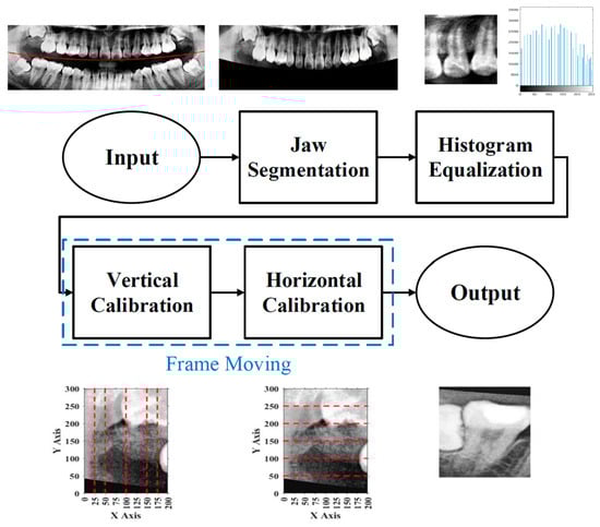 Figure 1. These steps included image preprocessing, cropping and positioning in PANO images, symptom enhancement algorithms, and the establishment of a CNN training database. Through image preprocessing and segmentation, the input PANO images were standardized and cropped to a size of