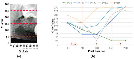 Similarly, for horizontal adjustment, the method followed the same principle as vertical calibration. Five horizontal lines of pixel intensity values were extracted at fixed y-coordinates: y = 50, 100, 150, 200, and 250, as shown in