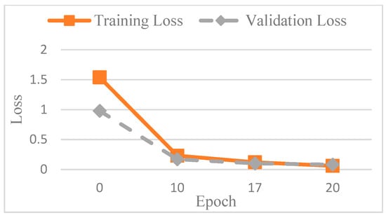 . Accuracy offered an overall assessment of the model’s correctness across all classes. Precision reflected the model’s ability to minimize false positives, while recall indicated how effectively the model captured relevant instances and avoided false negatives. The F1 score provided a balanced metric that accounted for both types of classification errors, false positives and false negatives, as shown in Equations (7)–(9).