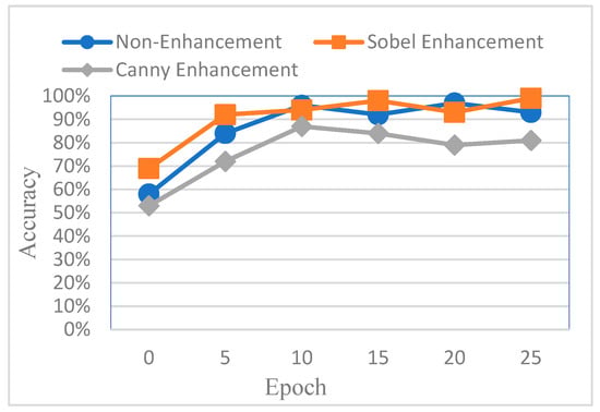 Figure 16. It was observed that images processed with Canny edge detection yielded the lowest training performance, primarily due to the additional noise introduced by the Canny algorithm, which negatively affected feature clarity and model learning.