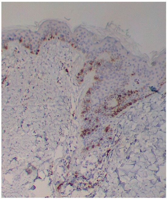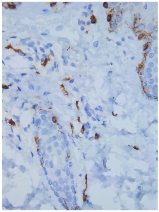 - Damman, J.; Diercks, G.F.H.; van Doorn, M.B.; Pasmans, S.G.M.A.; Hermans, M.A.W. Cutaneous lesions of mastocytosis: Mast cell count, morphology and immunomolecular phenotype. Am. J. Dermatopathol. 2023, 45, 697–703. [Google Scholar] [CrossRef] [PubMed]