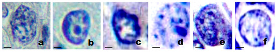 Examples of images from the training dataset. Different variants of chromatin distribution in the nucleus (a–f) indicate and help identify atypical cells.