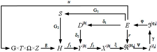 In Figure 3, cartesian product T × G × Ω × Z specifies the source of information. The term set (E) of the values of the information criterion (3) is common to all optimization contours of the machine learning parameters. Operator r: is restored for each stratum of the decursive tree in the process of information-extreme machine learning, in the general case, a fuzzy partition () of recognition classes. Operator ξ maps the binary vectors of the working matrix (X^|h|) to the partition (). Next, operator tests the main statistical hypothesis (). Operator γ calculates the set of precision characteristics () where . At each step of machine learning, operator φ calculates the information criterion of optimization, which is a function of the precision characteristics. The cycle of optimization of the control tolerances is closed through the set whose elements are the values of the control tolerances for diagnostic features. Operator regulates the machine learning process.