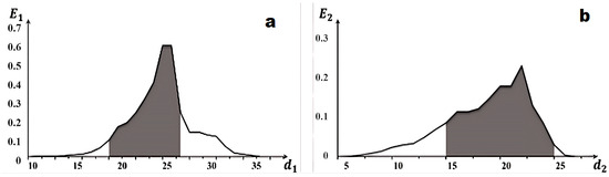 Decision rules were constructed following the acquisition of optimal machine learning parameters in terms of information content [16]. Their geometric parameters are presented in graphs illustrating the dependence of the information criterion on the radii of the recognition class containers (Figure 6).
