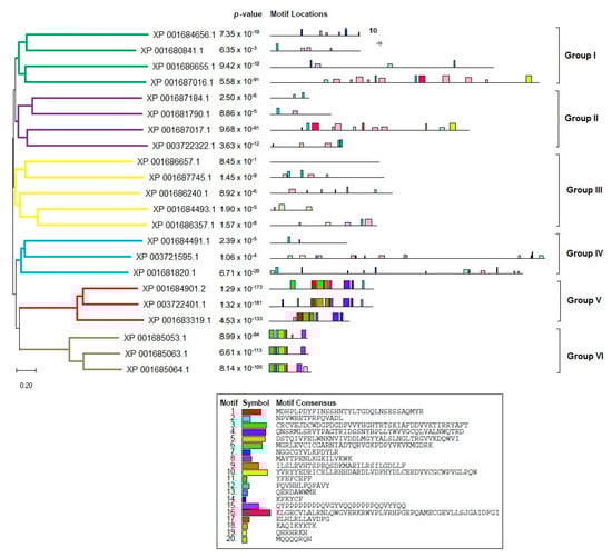 Phylogenetic analysis of the LmPI-PLC gene family in L. major. The tree illustrates six distinct groups based on protein sequences.