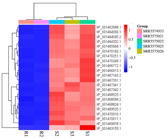 Heatmap of PI-PLC gene expression profiles in susceptible and resistant L. infantum lines. The heatmap illustrates the differential expression of the PI-PLC genes based on RNA-seq data.