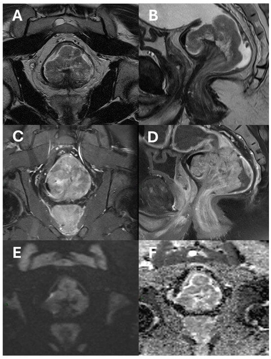 Additionally, MRI boasts exceptional resolution for soft tissues, enabling highly accurate prediction of both tumor stage (T stage) and mesorectal fascia involvement and effectively assessing the depth of tumor invasion beyond the muscularis propria (Figure 2) [].