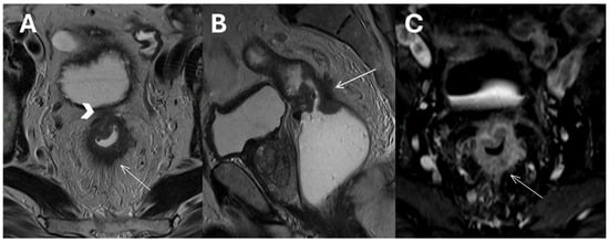 - Awiwi, M.O.; Jing, J.M.; Salem, U.I.; Palmquist, S.M.; Stanietzky, N.; Kandemirli, V.B.; Gjoni, E.; Surabhi, V.R. Rectal Cancer MRI: An Update. Semin. Roentgenol. 2025, 60, 61–77. [Google Scholar] [CrossRef]