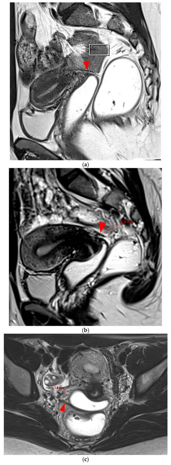 - Loubeyre, P.; Petignat, P.; Jacob, S.; Egger, J.F.; Dubuisson, J.B.; Wenger, J.M. Anatomic distribution of posterior deeply infiltrating endometriosis on MRI after vaginal and rectal gel opacification. Am. J. Roentgenol. 2009, 192, 1625–1631. [Google Scholar] [CrossRef]